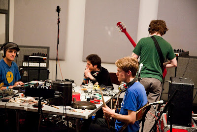 I got there a little too late to see Seb Rochford and Drew McConnell in action in the studio, but watched the mix-down; it sounded excellent. All the tracks are available in some form on the ICA website.